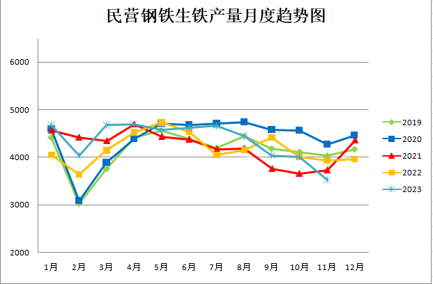 民營鋼鐵生鐵產(chǎn)量月度趨勢圖